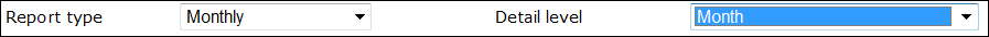 - Monthly - Displays the transaction totals broken down by month. Two detail levels are available in the detail level drop-down list: