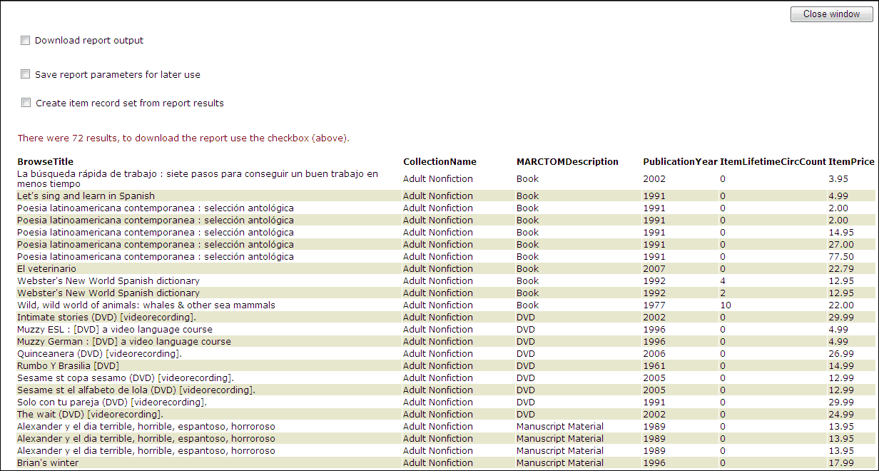 Tip: If the report output is not what you expected, you can close the preview window and change the settings. You can edit and preview the report output as many times as you want before downloading the report or saving the report parameters.