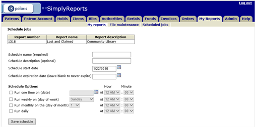 Note: For scheduled jobs to run successfully, the Polaris scheduling executive executable must be installed and running on the appropriate server. Contact your Polaris Site Manager if you need more information.