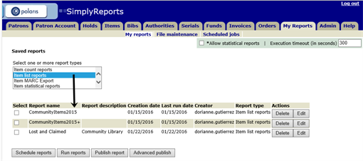 - Select the reports by clicking the check box next to the report name in the Select column.